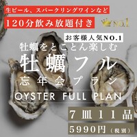 ◆牡蠣をたのしみ尽くす夜に!◆飲み放題付き◆7皿11品の牡蠣づくし新年会プラン 生牡蠣・焼き牡蠣・パスタと、最後まで牡蠣づくし。5990円(税別)11品