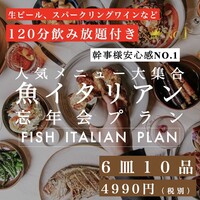 ◆幹事様満足度ナンバー1!◆飲み放題付き◆6品10種の王道魚イタリアンコース 鮮魚からパスタ、ピザまでお得に。4990円(税別)11品