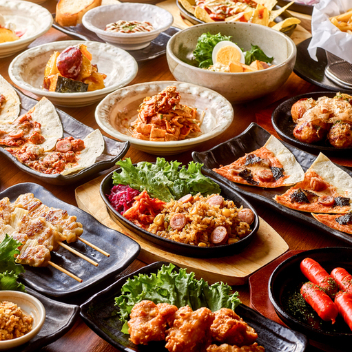 厳選食材を使用した人気料理メニュー!サクサク食感で軽い「トルティーヤピザ」やスパイシーな香りがたまらない「キムチジャンバラヤ」など人気メニューに種類豊富なドリンク全76種を食べ飲み放題!その他お得なコースを各種ご用意◎
