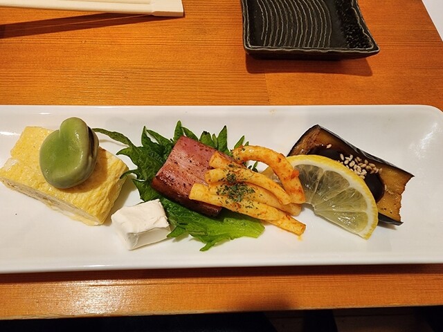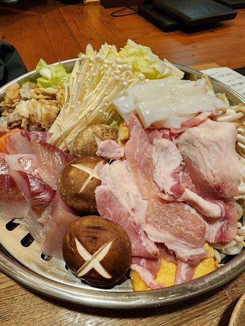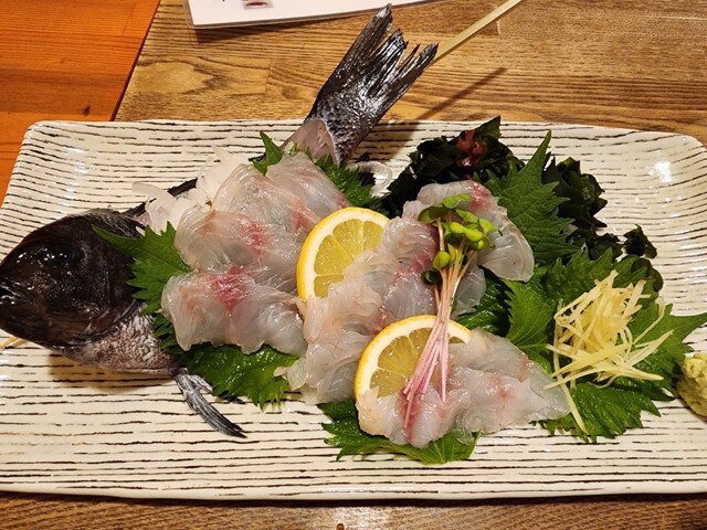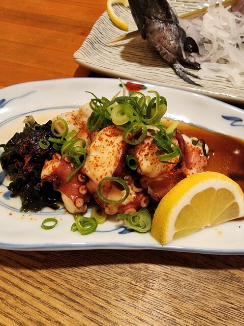 本日も予約なしの来店で鍋を注文。 【めじな造り】780円? 少し柔らかめの食感で、クセも無く食べやすい魚。針生姜と合わせても風味が良く美味しい。 【たこ一味焼き】780円 大きめに切ったたこは固くなく、程良い弾力でとても美味しい。一味のピリッとしたアクセントも酒のツマミに丁度良い。 ... 詳細を見る