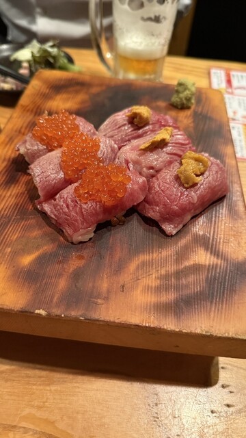 新鮮な肉ならではの肉料理がフルラインナップ。海鮮と肉のコラボ、和牛カツサンド等魅力的なものばかり。肉寿司だけでもむっちゃ種類ある(注文は2貫から、肉のボリュームあり)。どのお肉も品... 詳細を見る