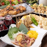 【各種宴会におすすめ】「桜島鶏もも肉の炭火焼」をメインに、「手羽先の炭火焼」やお酒のアテにぴったりな九州名物を揃えた全10品◎プレミアムモルツがついた種類豊富な飲み放題付!土~木3h/金祝前2h飲放題(Lo30分前)