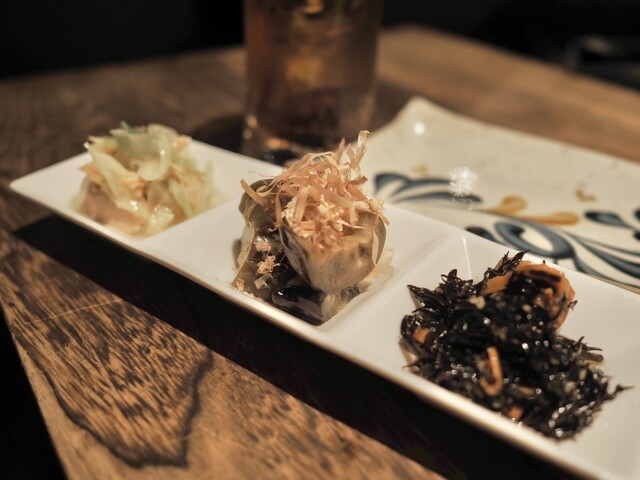 お茶割り酒と焼鳥とおばんざいを楽しめる、和を基調としたお店。焼鳥には「大山どり」を使い、部位ごとに角度や温度を調整しながら焼き上げます。「玄米茶」や「宇治玉露」などの厳選茶葉に焼酎を調合した1杯と共に、口福の時間をどうぞ。朝引き鶏のお造りや串焼を味わえる4,000円のおもてなしコースや、破格の500円飲み放題もおすすめです。やきとり、日本茶、おばんざい。和の味わいを気軽に楽しめます。