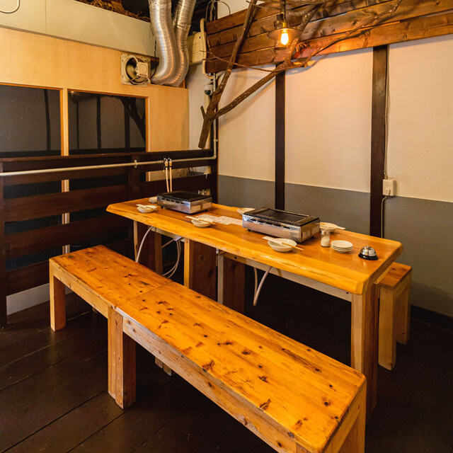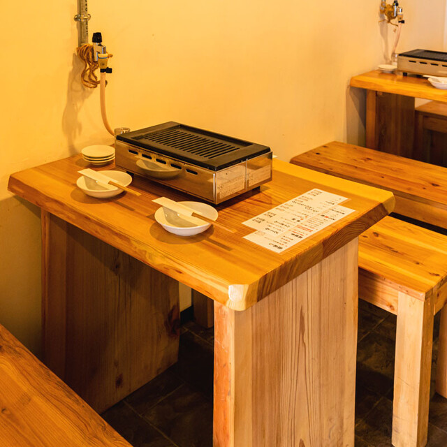 各テーブル・カウンターに設置された焼台で自分好みに焼いて頂くスタイルのお店