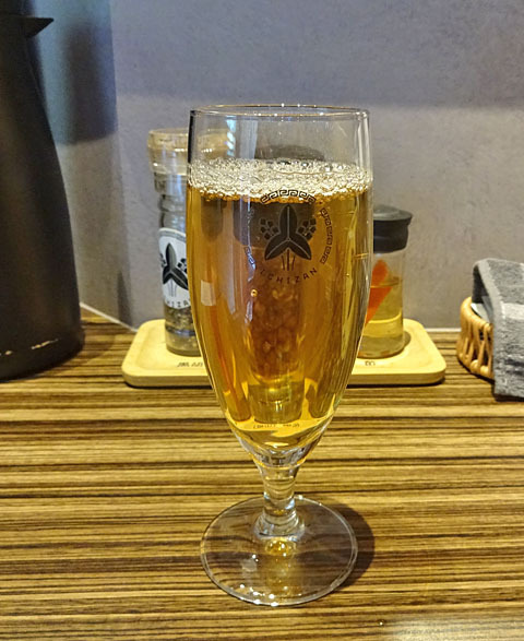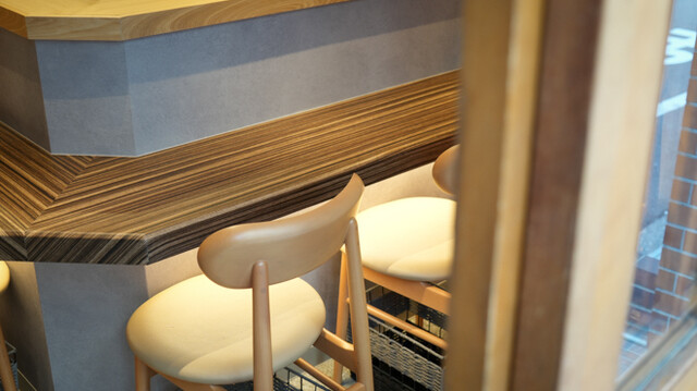 扉を開くと木目調の温かみを感じながらもスタイリッシュさとも調和しいる「和モダン」風で、手前にカウンター席、奥にテーブル席がある合計18席の店内