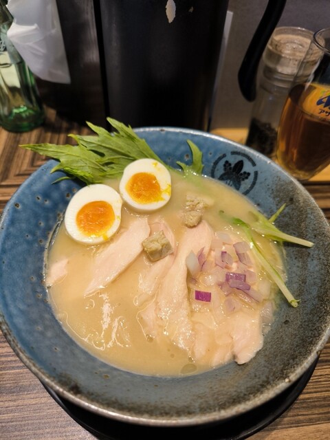金曜日の夜に訪問。 店の入り口のメニュー「新鶏白湯」に惹かれて、相方と入店しました。 入り口左手の券売機で食券を購入し、カウンターのスタッフに手渡ししました。 カウンター席に... 詳細を見る