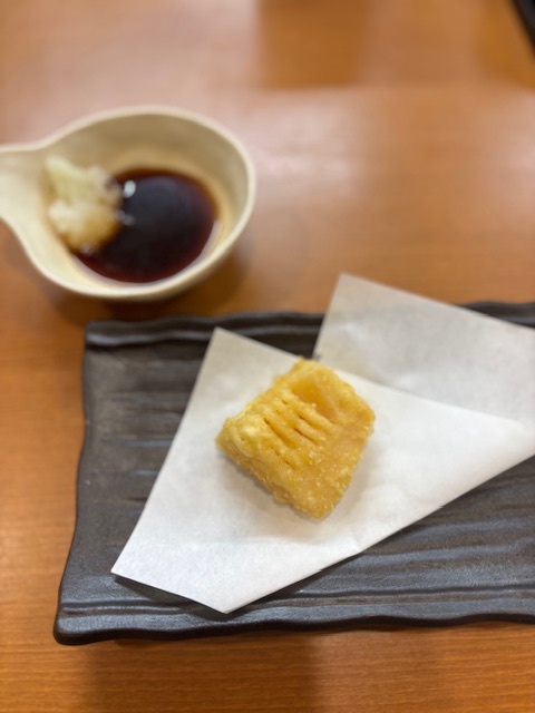 揚げたての天ぷらを一品づつお持ちさせていただきますので、熱々でサクサクの天ぷらを召し上がっていただけます。