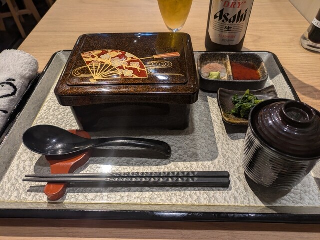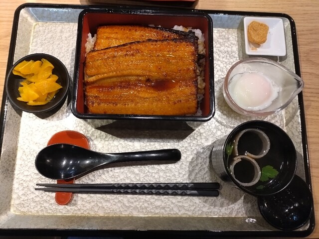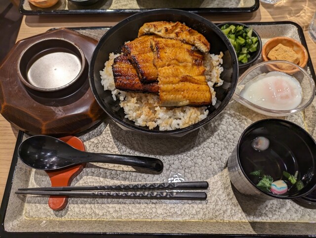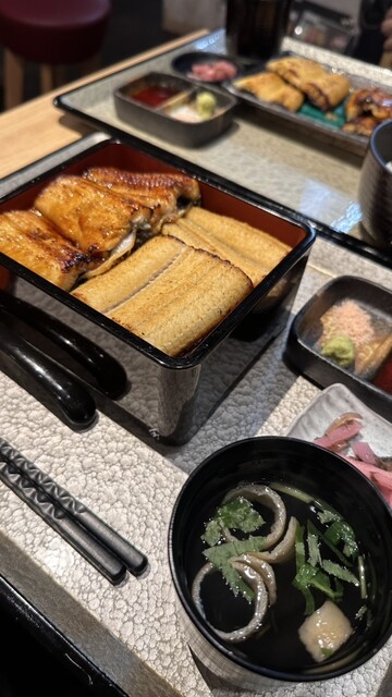 お店の雰囲気は、ターゲットがインバウンドといった感じのお店で、日本のザ・鰻店とはかけ離れている感じのお店でした。お料理はその場で調理するのではなく、温めて出されている感じなので、提供時間は10分程度と...