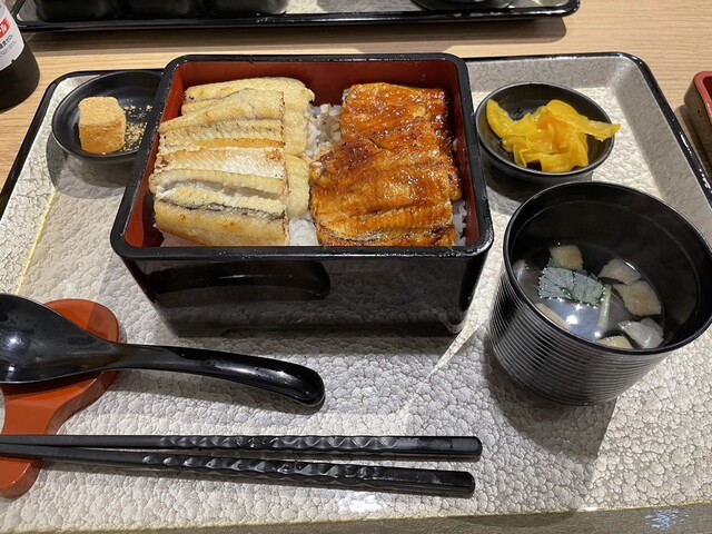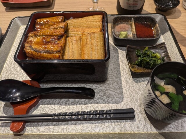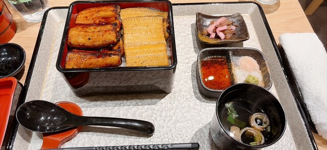 うな重、ひつまぶし、白焼、蒲焼とメニューは豊富でした。うな重はご飯大盛りにも変更できるらしいです。駅から近く、わかりやすい場所で、車はキューズモールに停めるのが1番近いかも。お買い物ついでにランチがオ...