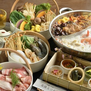 〔前菜4種盛り〕 季節の前菜・食前酒 〔野菜・きのこ盛り合わせ〕 季節の野菜7種 春雨・凍り豆腐 季節のきのこ4種 〔海鮮盛り合わせ〕 季節の海鮮3種・白身魚すりもの 〔お肉盛り合わせ〕 豚肩ロース・鶏もも肉・牛赤身 〔〆〕 選べる麺(中華麺・蒟蒻麺・平太春雨) 〔デザート〕 杏仁豆腐・日替わり中国茶 ※演出(花火やBGM等)につきましては、 スタッフにてお手伝いさせていただきます。 ※お祝い用のプレートは、基本的にご用意しておりません。 ※ケーキなどのお祝い品につきましては、 お客様ご自身でのご持参をお願いしております。 ※シャンパンボトルを含むお飲み物の持ち込みはご遠慮いただいております。 何卒ご了承くださいませ。 |