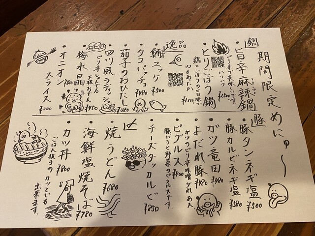 | 空間・設備 | 落ち着いた空間、席が広い、座敷あり、無料Wi-Fiあり、車椅子で入店可 |