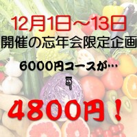 限定㊙️11月末までにご予約の方㊙️早めの忘年会がオトク❗❗❗❗6,000円コース➡4800円♥️13品