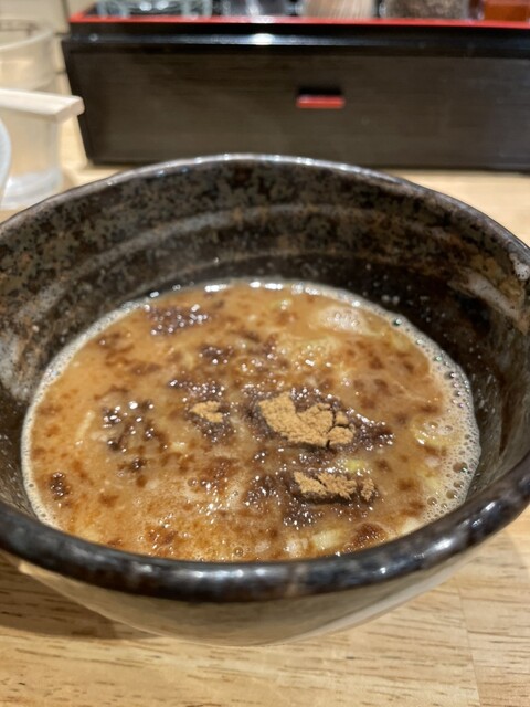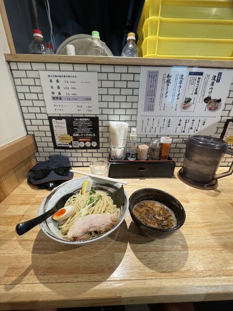 濃厚つけ麺@950円 こちら、並盛りから大盛り、特盛麺2玉まで同価格です。並盛は少な目、と書いてあったので大盛りにしました。他のお客...