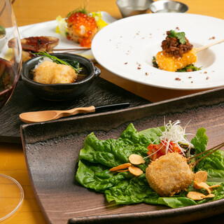 - 食前酒付き・スティック野菜・有機カップサラダ・お口直し付き