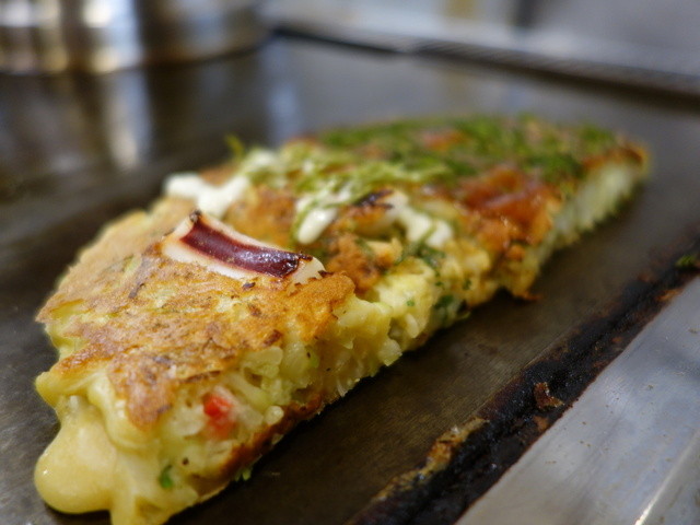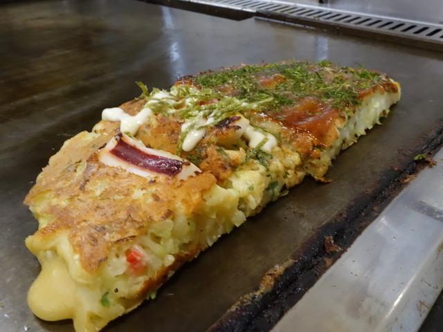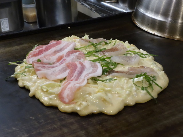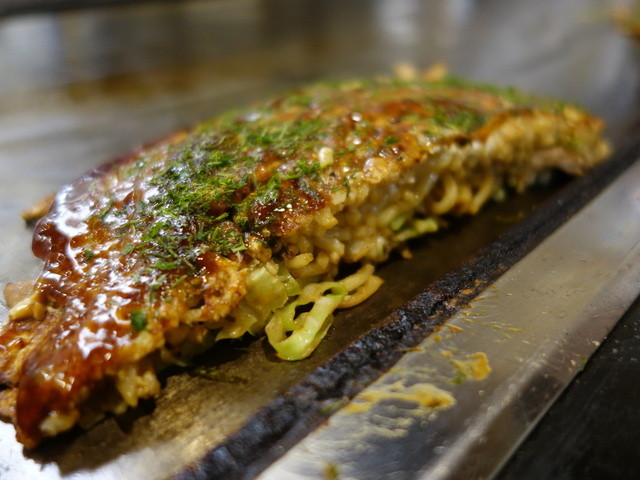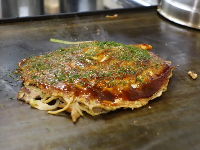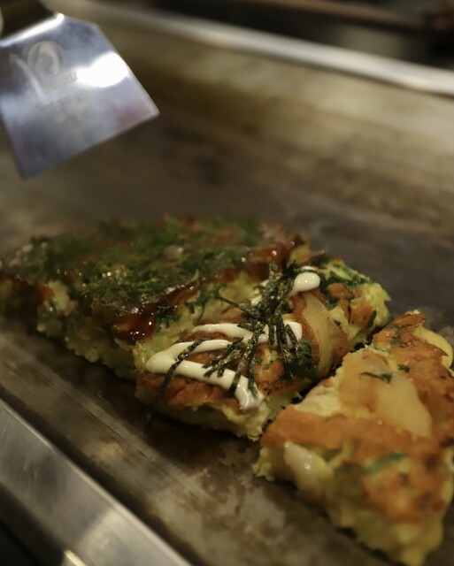 目の前で焼かれていくお好み焼きのライブ感と、大将...