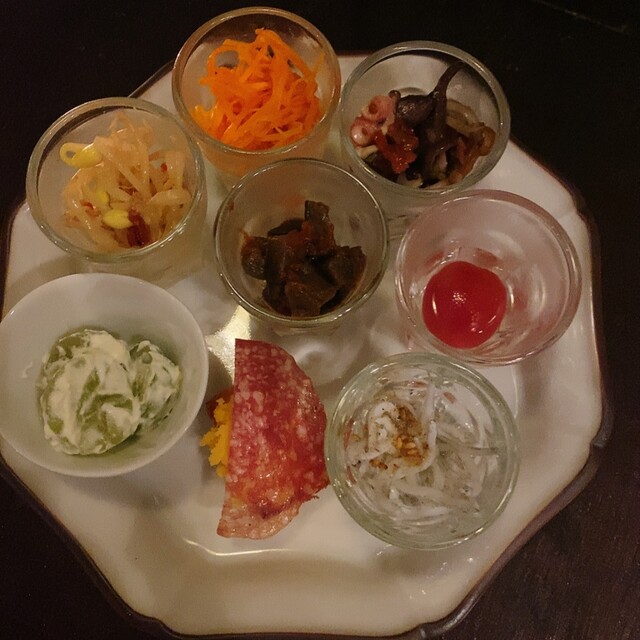 南蛮漬にコロッケ、自家製オイルサーディン、ベッカフィーコ、