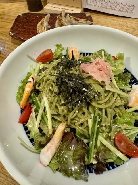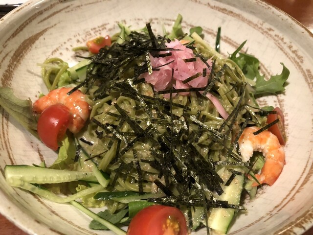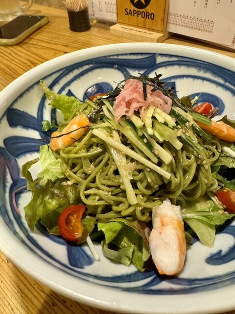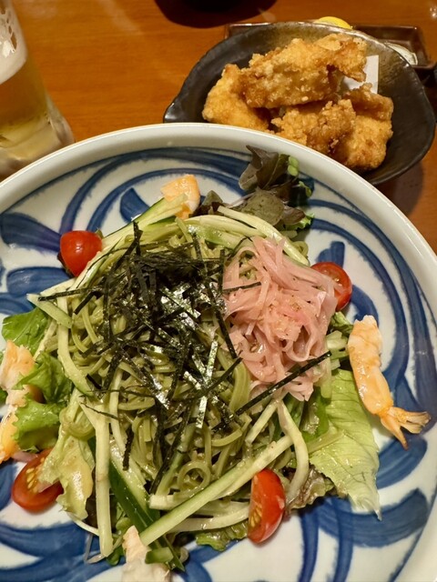 野田阪神駅前商店街にある、茶そばサラダが旨い割烹風居酒屋さん〜♪