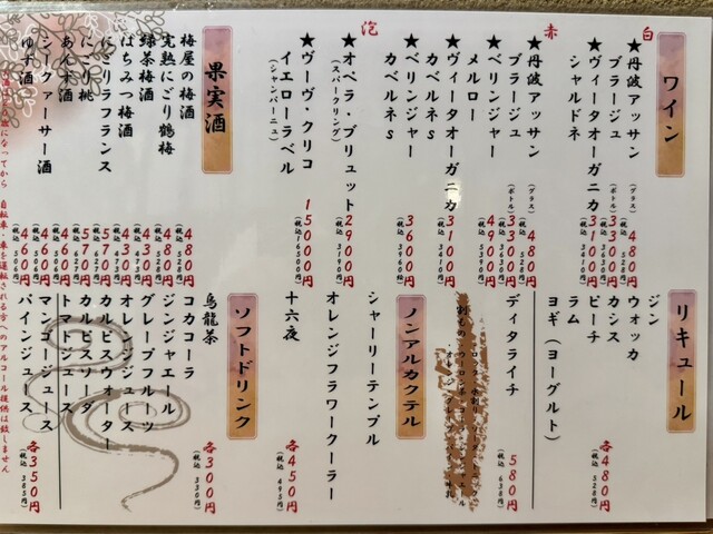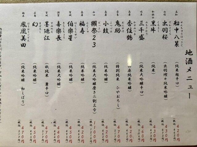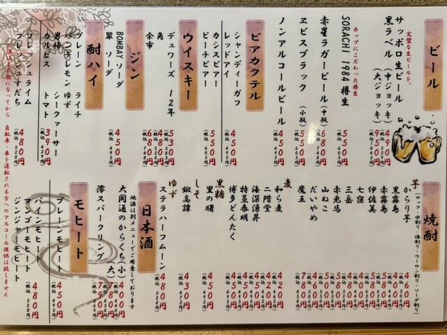 | ドリンク | 日本酒あり、焼酎あり、ワインあり、カクテルあり、日本酒にこだわる、焼酎にこだわる |