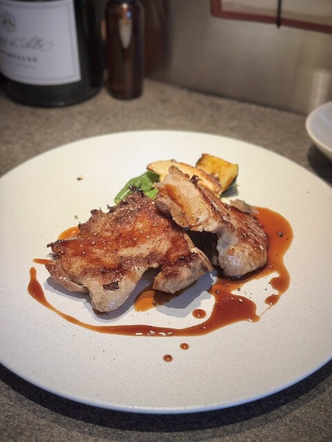 以前から前を通って、気になっていたお店。 今回、結婚のお祝いで個室を利用させていただきました。 コース(当日オーダーOK!)にするか、アラカルトにするか迷いましたが、気になるメニューがたくさんあり、アラカルトでオーダー。 お皿に可愛く盛られた河内鴨の炙り3種から始まり、アヒージョ、ガレット、鴨のロースト、などなどどれもこれも丁寧で一つ一つに驚きがありました。最後にシメで食べた独創的なお蕎麦は... 詳細を見る