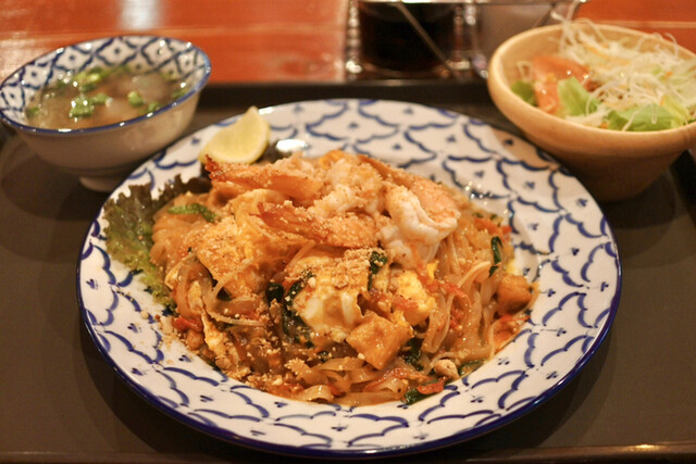 私はお米の麺がプニプにして美味しいタイの焼きそばであるパッタイにしました。