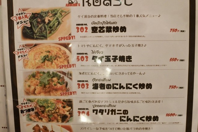 ガパオライス、カオマンガイ、パッタイ、グリーンカレー、パネーンカレー、マッサマンカレー、