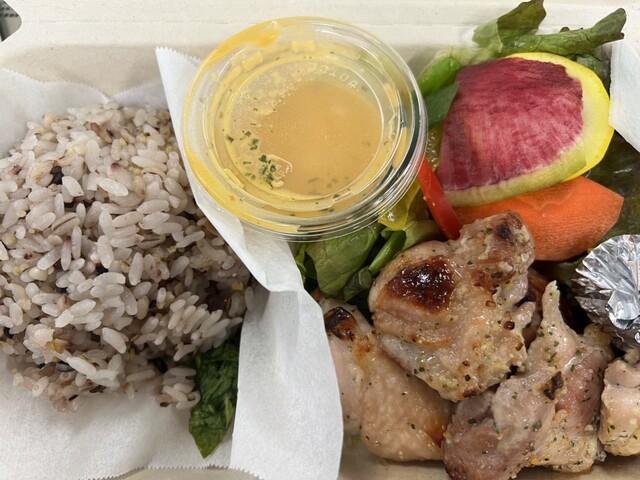 ご飯も十穀米か白米か選べて、サラダのドレッシングも4種類から選べた✨