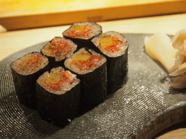 店内はオープンキッチンカウンターにテーブル席 和モダンな空間で居心地の良い雰囲気です いただいたのは、19品の「おまかせコース」 先ずは挨拶がわりの「中トロ」から ... 詳細を見る
