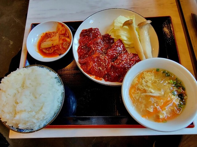 ランチタイムか賑わっていて満席の人気のお店です 卓上に焼き網と 調味料がありました✨ ハラミステーキ定食 をいただきました お肉は200g にしました ... 詳細を見る