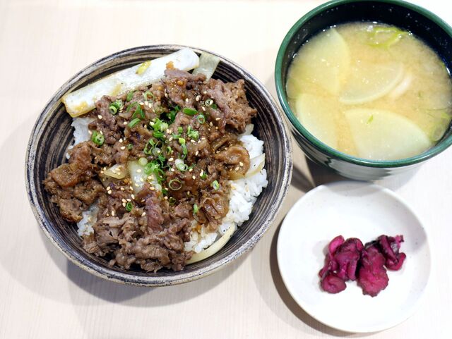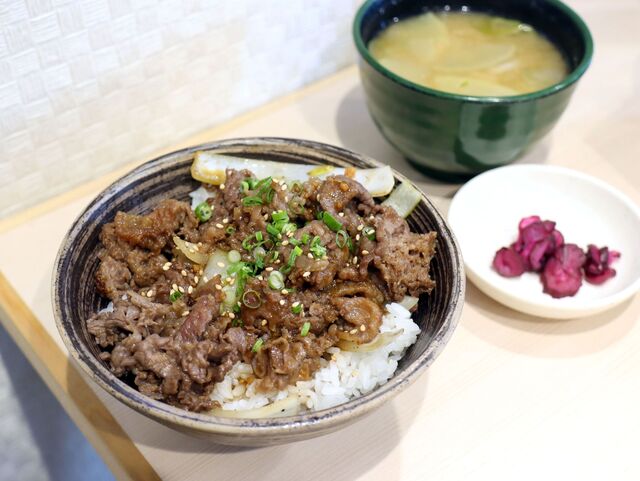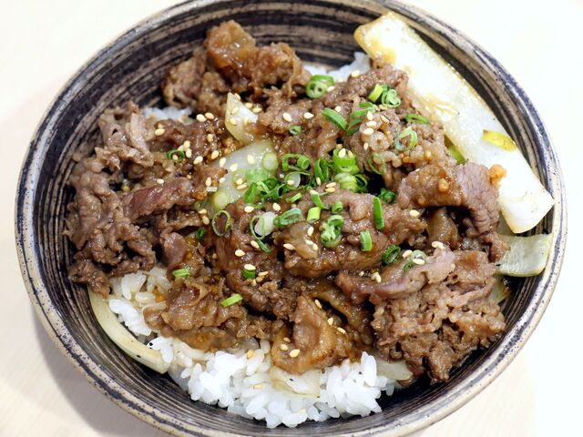 「牛カルビ丼」を白米大盛で注...
