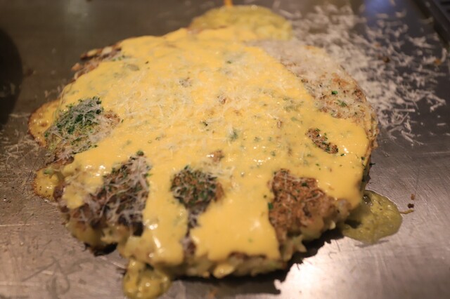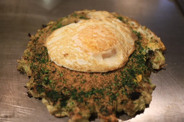 となりの焼肉屋のお好み焼き屋だからこそ和牛をたっぷり使用した粉もんを提供。名物肉玉が絶品!