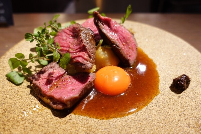 ✔️牛ロースト、卵黄と豆板醤のアリオリソース