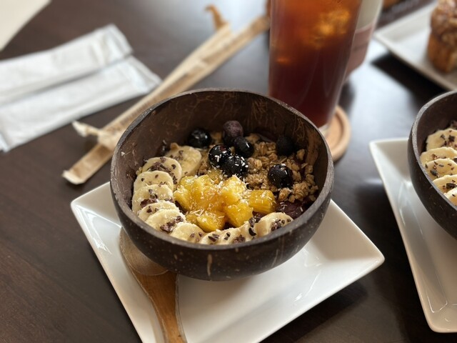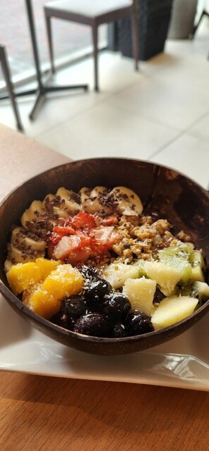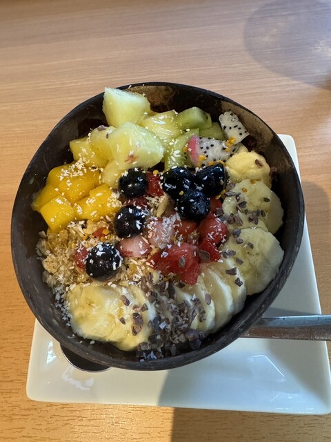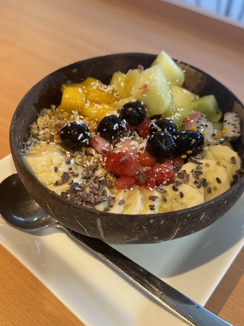 店員さんは優しくてとても良かったです。お店はホテルと繋がっており、店内はあまり広くないです。店内はオシャレで、とても良かったです。アサイーボウルは初めはシャリシャリしていますが、だんだん溶けてきて、も...