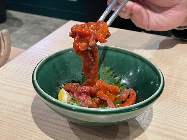 A5ランク黒毛和牛が楽しめる 南森町にある人気焼肉店の2号店をご紹介! 一頭買いをされてるお店だからこそ、 鮮度高いお肉がリーズナブルに味わえます! 『黒毛和牛ネギ塩タン』 とても柔らかいタンであっさり。 上質な肉の旨味口一杯にひろがり、 ペロッと食べられます! またネギが最高です! 『和牛特選大トロユッケ』 薄味のわりしたあっさりのタレに、 卵黄という間... 詳細を見る