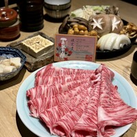 使用する部位は「ロース」のみ。 こだわりの野菜と一手間加えた特製の醤油で最高のすき焼きを。 ※当コースは、お客様のペースでゆっくりとお楽しみいただけるよう、基本的にお鍋の調理はお客様ご自身にてお願いしております。スタッフは最小限の出入りとさせていただいておりますので、予めご了承くださいませ。