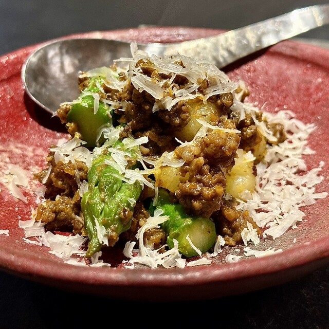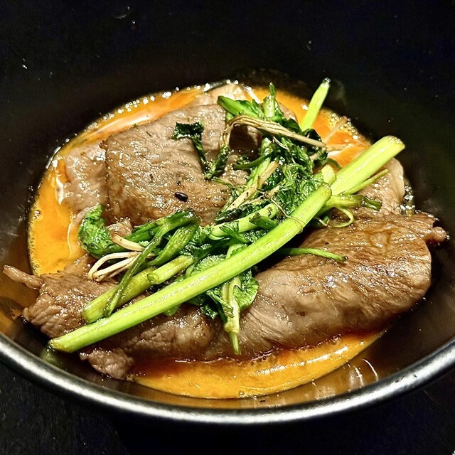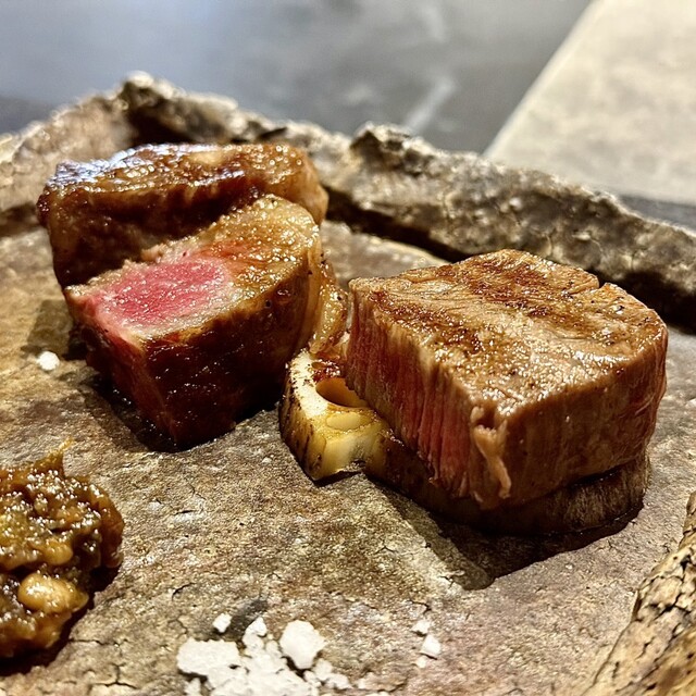 万葉牛を使用した、フルアテンドの牛料理を堪能できるこちらのお店。店主は様々なお店だけでなく、牧場で働いた経験もあるそうで、経験に裏打ちされた仕入れ力が、コース全体の美味しさに繋がっています。