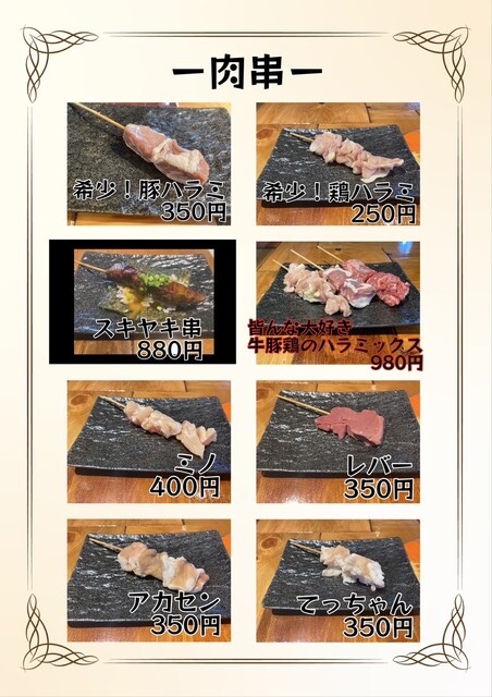 | ジャンル | 串焼き、居酒屋、焼き鳥 |