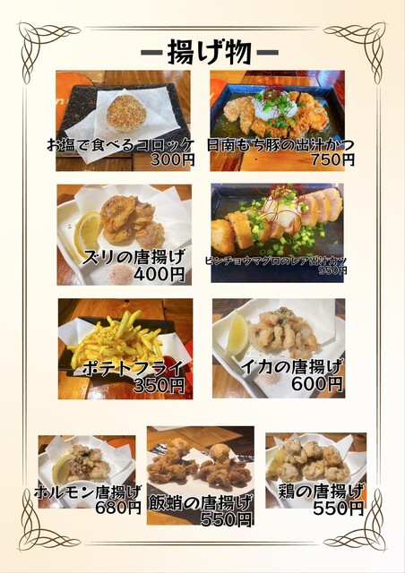 | サービス | 2時間半以上の宴会可、お祝い・サプライズ可、ハッピーアワー、テイクアウト、デリバリー、複数言語メニューあり(英語)、写真付きメニューあり、デジタルメニューあり |