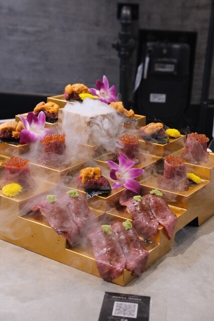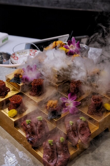 登場からインパクト絶大だったのが「階段盛り」!きた松特製の盛り合わせは、霜降りの美しいお肉が段違いで並び、...
