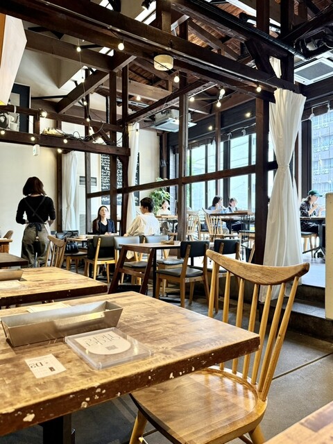 木材倉庫を改装して作られた古民家風のカフェダイニング。