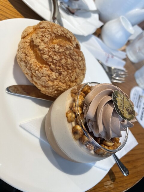 気になっていたル・ピノーさんへ。近くに行く機会があったので伺いました♪ケーキを買って、隣のカフェでドリンクを頼むシステムでした。ミルクレープとモンブランを注文!どちらも濃厚で美味しかったです!モンブラ...