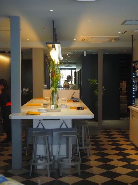17:15の予約時刻に到着しましたが、1階はカジュアルで明るい雰囲気です。我々は店内奥の半個室に案内されました。