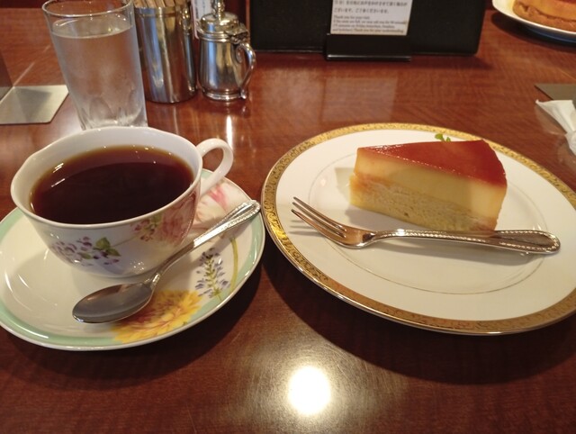 上品な空間で味わう、プリンケーキとマイルドコーヒーの幸せな組み合わせ