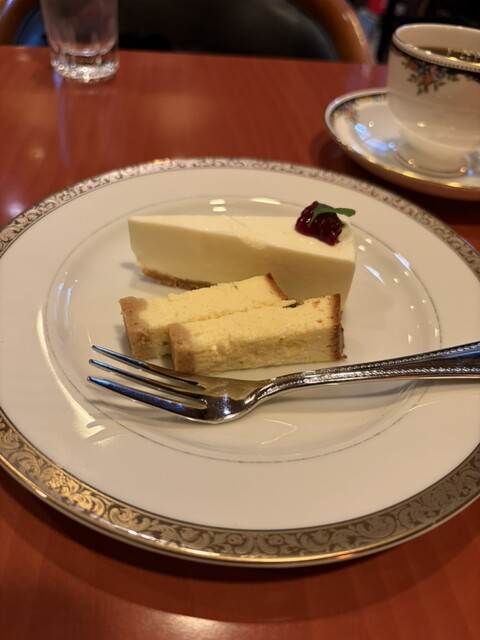 はり重のあとは、こちらでコーヒーとチーズケーキ2種盛り、レアチーズケーキとベークドチーズケーキどちらも美味しいが、今日はレアチーズのビスケット生地?の塩味が絶妙で美味しかったです。倍の大きさで食べたか...
