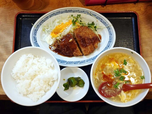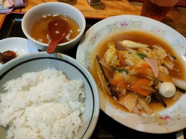 同僚とランチ。 こちらの定食が安くてお気に入りなのだとか。 ラーメンと半中華丼のセットのイメージが残っていてランチは知らないかも。 ● Bランチ(肉炒め&エビ玉) 850... 詳細を見る