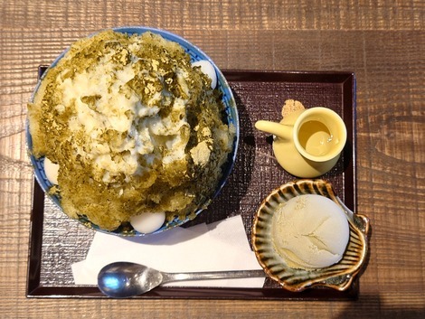 宇治抹茶ミルク金時に掛かってる“お抹茶”が