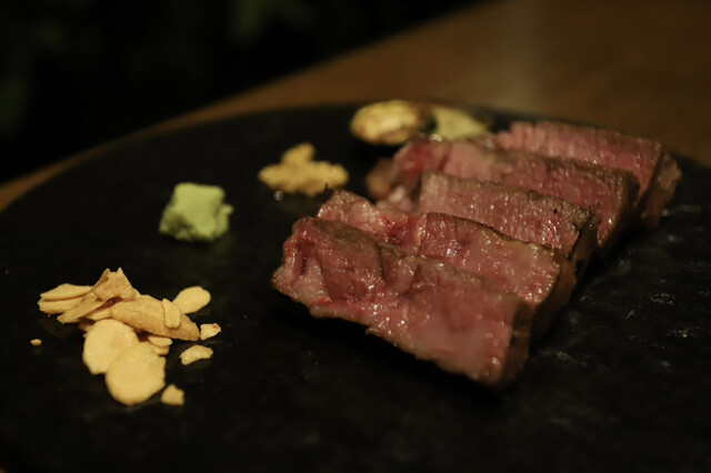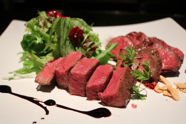 コースのメインは黒毛和牛ハラミのステーキで、このお肉がとても印象的でし...