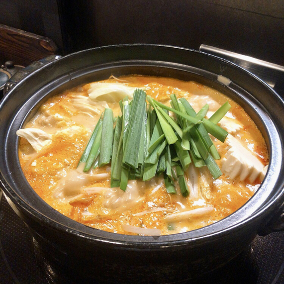 コラーゲンたっぷりのちょいピリ辛鍋。普通の水炊きもあるので辛いの苦手な方も大丈夫♡
