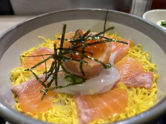 長堀橋にある居酒屋「きのこ」さんでランチ♪ 夜は美味しいアテと日本酒が楽しめそうなお店ですが、お昼の丼も評判です。 ◾︎ 海鮮ちらし丼 950円 小鉢、漬物、味噌汁、ご飯... 詳細を見る