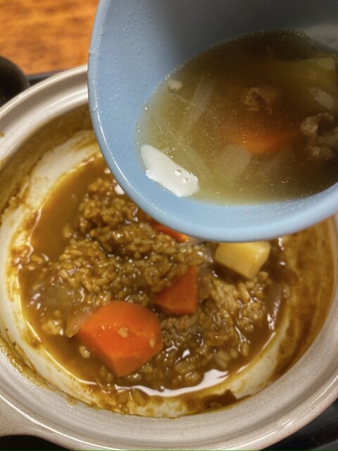 以前テレビで観てずっと気になっていたお店で創業40年以上だそう(*^^*) ☆土鍋カレー、コンソメスープ(金曜日限定880円) ぐっつぐつの土鍋カレー♪ 暑い日にカレーの... 詳細を見る