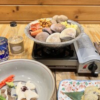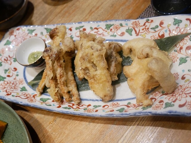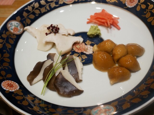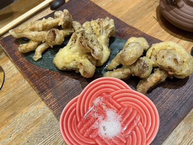 春期限定 きのこ出汁の蛤鍋と山菜のコース ○きのこのお刺身3種 コース限定で3種のお刺身をご用意しております。 それぞれ香りや食感に合わせたお醤油で。 ○きのこと山菜の天ぷら 春の山菜ときのこの旨みを引き立たせる自家製のお塩で ○きのこ出汁の蛤鍋 きのこの旨みと香りのお出汁で蛤鍋 ○きのこ出汁の山菜きのこ蕎麦 きのこと蛤の旨味が詰まったお出汁で山菜きのこ蕎麦を 今年の『山と海の春』を味わう ○蕎麦湯 きのこの香りがする蕎麦湯を味わえるのは珍しい。 きのこと蛤鍋のお出汁で山菜きのこ蕎麦を召し上がって頂いた後、残ったお出汁を蕎麦湯を。 この春、おすすめしたい一品です。 ○トリュフアイス